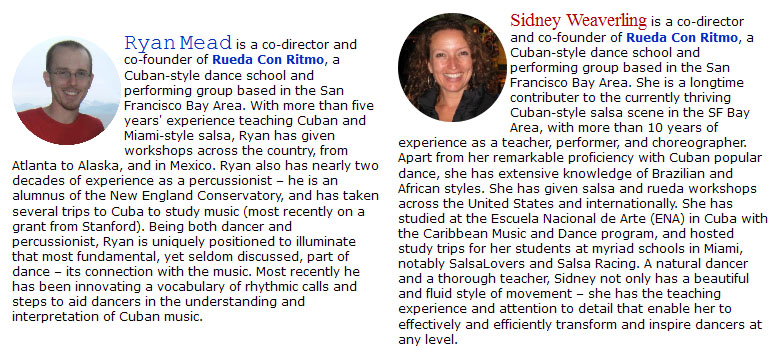 7:30 - 8:30pm: Salsa Musicality, Part I: Adding Rhythmic Accents to Salsa Footwork