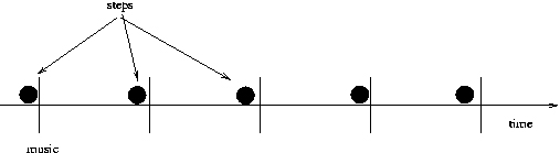 Excerpted from "Latin Dance Study Guide" by Martin Blais. For more info about this book, click here. Of great importance is the matter of small-scale precision of the steps with respect to the music. As a trained jazz musician, I cannot forego noticing someone who dances consistently just-a-little slightly ahead of the beat. This is a very subtle point, which requires great attention, because ultimately it has a the greatest effect on how your style comes out. Precision issues A legitimate question is how precise should one be? Some people seem to think that the fact that your feet do not hit the ground precisely on the beat does not matter as long as you're not drifting off the rhythm. The fact that you must not be drifting away from the rhythm is obvious, but precision with respect every step is tantamount to the perception by others that the feet are actually going to the music. However, accurate rhythmic precision itself is not as much an issue as the question of being early vs. being late. So should you dance slightly ahead or slightly late? Dancing slightly late to the beat looks more "in the rhythm" than dancing slightly ahead of the beat. The human mind seems to play the same trick as in jazz music, where most players are playing in a very "laidback" manner, behind the rhythm section, yet the brain still perceives it "on time". Analogy with Music The analogy with music applies perfectly here: there is a very useful lesson to be learned from musical interpretation. When a soloist plays just slightly ahead of the accompanying music–and I really mean just slightly, not on different beats–it creates musical tension (1st figure). Conversely, when a soloist plays behind the music, which is generally referred to as playing "laid-back", it creates a relaxed, groovy feeling. So much, that our minds will easily be dragged along by a solo that can be as much as nearly a full beat behind the rhythm section, and we will still perceive it as being "on the beat" (2nd figure).